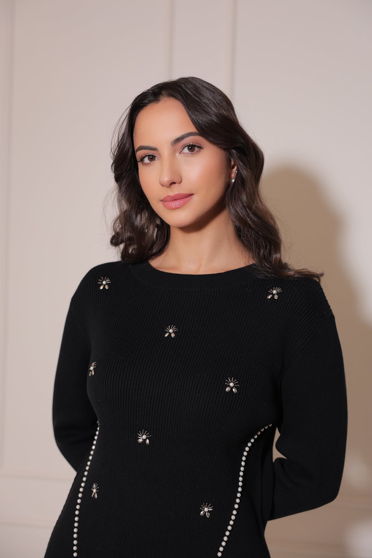 This Aurora Pearl Sweater is the epitome of sophistication and charm. Featuring intricate pearl details and embellished motifs, it combines timeless design with modern flair. The ribbed texture offers a flattering fit, while the delicate embellishments add a touch of luxury. Perfect for evening outings, formal events, or festive celebrations.